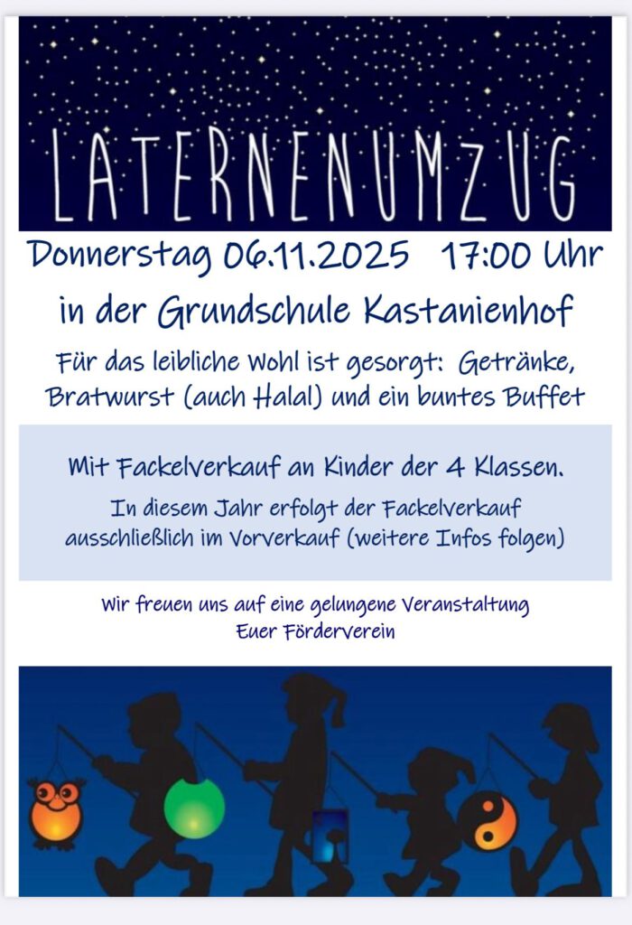 Der Laternenumzug der Grundschule Kastanienhof findet am Donnerstag, 06.11.25, ab 17:00 Uhr statt!