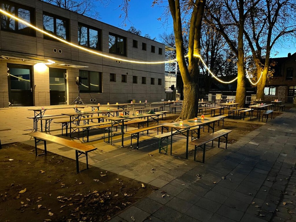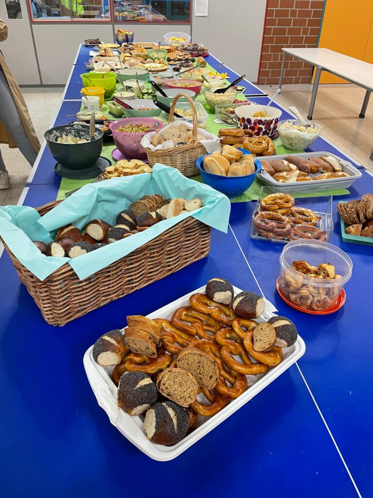 Auf dem Schulhof warteten warme Getränke, ein liebevoll gestaltetes Buffet, Pommes, Bratwurst, Leberkäse, Glühwein & Kinderpunsch – und ganz viel Gemeinschaft.