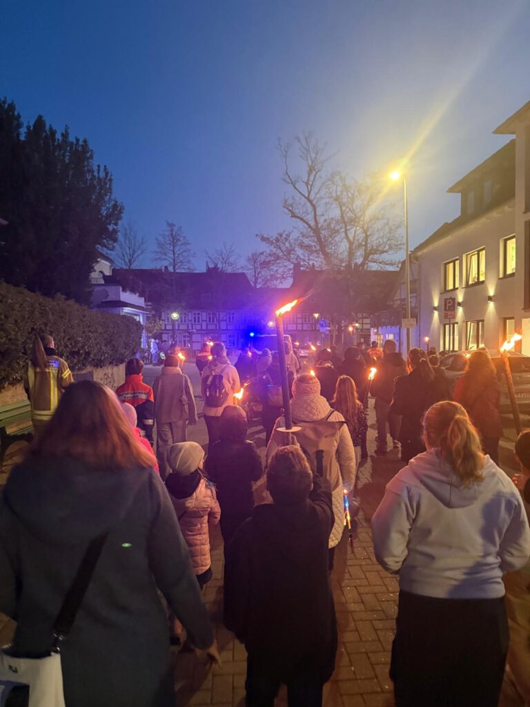 Bei perfektem Herbstwetter ging es mit der Jugendfeuerwehr durch die Innenstadt, musikalisch begleitet vom Sarstedter Blasorchester. Ein besonders schöner Moment: der Halt am Altenzentrum Heilig-Geist – leuchtende Laternen, Musik und viele bewegte Gesichter.